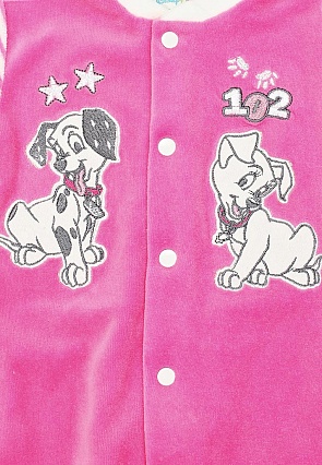 Ползунки из вельвета от Disney - уют и комфорт с первых дней жизни! От горловины и до стоп комбинезон застегивается на кнопки – для более удобного надевания. Мягкая ткань не раздражает чувствительную кожу ребенка. Нашивка с главными героями мультфильма ‘101 долматинец’ обязательно порадуют малютку. Приведенные ниже измерения соответствуют размеру 50/1М. Disney – одна из самых известных марок деткой одежды. Она отличается исключительно высоким качеством, износоустойчивостью и экологической чистотой материалов, что полностью удовлетворяет потребности родителей.