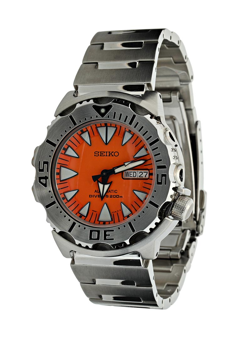 Серебристые часы Seiko - это выбор успешного спортивного мужчины! Изделие оснащено автоматическим механизмом. Классическая модель включает в себя центральную часовую, минутную и секундную стрелки. Оранжевый циферблат с делениями и отсутствием цифр обращает внимание на ваш вкус. Часы обладают функцией показа даты и дня недели. Стальной водонепроницаемый корпус обладает высокой устойчивостью к царапинам и внешним повреждениям.