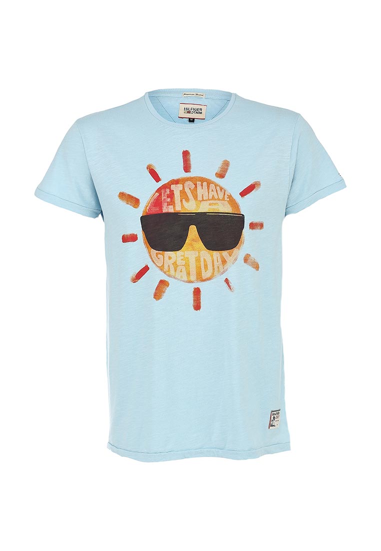 Футболка Tommy Hilfiger - выбор стильных мужчин. Модель свободного кроя создана из высококачественной хлопковой ткани, которая гарантирует комфортные ощущения в течение всего дня. Футболка светло-голубого цвета декорирована ярким контрастным принтом. Приведенные ниже измерения соответствуют размеру М.
