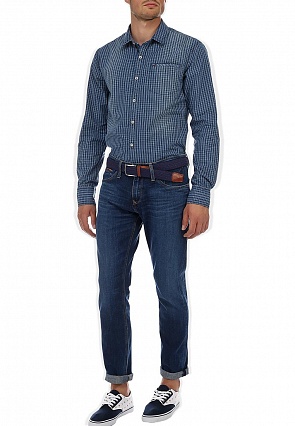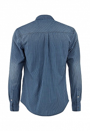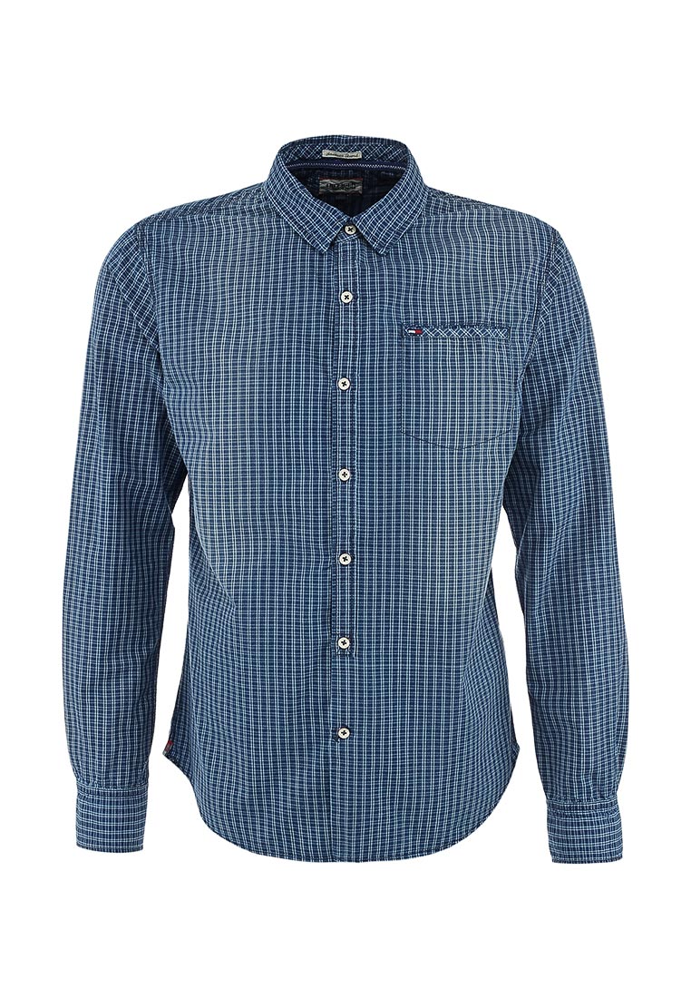 Рубашка Tommy Hilfiger темно-синего цвета в контрастную мелкую клетку. Модель застегивается на ряд пуговиц, на груди – накладной карман с вышитым логотипом бренда. Приведенные ниже измерения соответствуют размеру М.