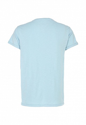 Футболка Tommy Hilfiger - выбор стильных мужчин. Модель свободного кроя создана из высококачественной хлопковой ткани, которая гарантирует комфортные ощущения в течение всего дня. Футболка светло-голубого цвета декорирована ярким контрастным принтом. Приведенные ниже измерения соответствуют размеру М.